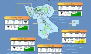 Terakhir, di Kepulauan Bintan, BMKG Kelas I Hang Nadim Batam memperkirakan cuaca pagi hujan ringan, siangnya dan malam berawan tebal, dini hari hujan ringan. Angin bertiup dari arah utara dengan kecepatan angin 11-13 Knot. Dan tinggi gelombang 0.5-1.25 meter. (Nzl)