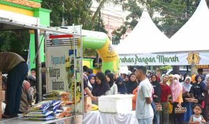Berbagai bahan pokok dijual dengan harga di bawah pasar, seperti beras SPHP seharga Rp58 ribu per 5 kilogram, gula pasir Rp14 ribu per kilogram, dan telur ayam Rp50 ribu per papan.