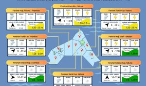 Terakhir, BMKG Kelas I Hang Nadim Batam memperkirakan cuaca di Perairan Utara Natuna, pagi hari hujan ringan, siangnya hingga dini hari petir. Angin bertiup dari arah barat daya dengan kecepatan angin 9-13 Knot. Dan tinggi gelombang 1.25-2.5 meter.(Nzl)