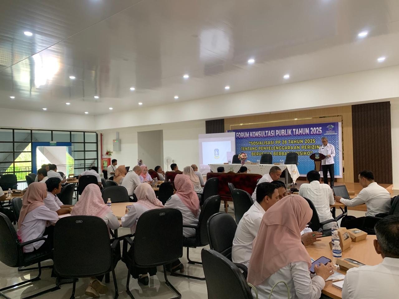 TANJUNGPINANG, Kepri.info-Dinas Penanaman Modal dan Pelayanan Terpadu Satu Pintu Provinsi (DPMPTSP) Kepulauan Riau (Kepri) menggelar sosialisasi Peraturan Pemerintah (PP) Nomor 28 Tahun 2025 Tentang Penyelenggaraan Perizinan Berusaha Berbasis Risiko.