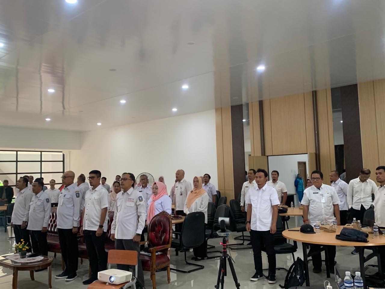 Pejabat DPMPTSP, Narasumber dan Peserta Sosialisasi Saat Menyanyikan Lagu Indonesia Raya, Selasa (19/08/2025).