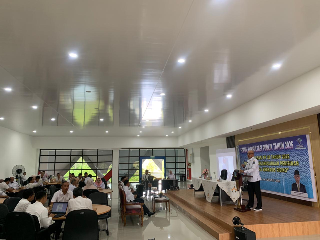 Narasumber dan Peserta mendengarkan sambutan dan arahan Kepala DPMPTSP Kepri, Hasfarizal Handra, Selasa (19/08/2025).