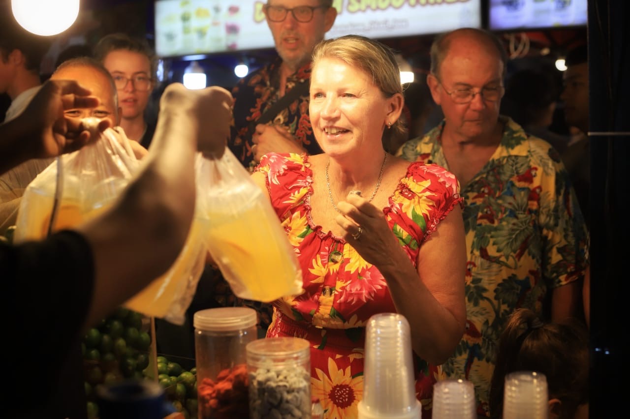 Para wisatawan tampak antusias menjelajahi bazaar UMKM, mencicipi ragam hidangan tradisional, serta menyaksikan penampilan Barongsai dan Naga yang memukau.