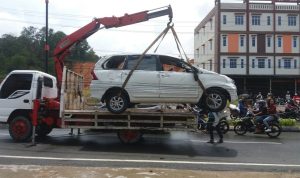 Kejadian itu membuat ruas Jalan DI Panjaitan macet total. Sedangkan Avanza yang menabrak tiang Telkom tersebut ringsek hingga tak berbentuk, kaca bagian depan ringsek dan ban depan pecah. Sementara tiang Telkom yang ditabrak patah dua bagian.
