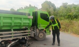 “Namun, saat melakukan manuver tersebut, pengemudi truk diduga tidak memperhatikan kondisi arus lalu lintas di belakangnya. Pada saat bersamaan, sepeda motor yang datang dari arah yang sama melaju dan tidak sempat menghindar,”jelasnya.
