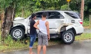 Mobil tersebut berhenti setelah menabrak pohon yang ada tak jauh dari lokasi tersebut.