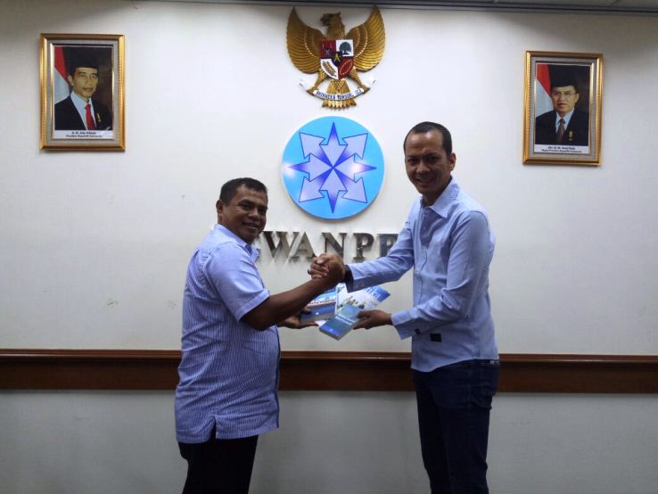 Ketua panitia Whorshop perspektif jurnalis terhadap dunia Pendidikan Kepri, Irwan Panggabean ST, MH, bersama Ismantono, kabid penegakan dan penindakan dewan pers nasional, dikantor dewan pers nasional, kebon sirih, jakarta, (22/11)