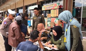 Petugas Samsat lainnya juga terlihat mendata, hingga memberikan surat tagihan pajak kepada pengendara yang terjaring.