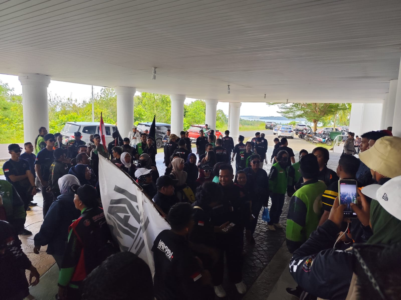Suasana Ratusan Ojek Online lakukan aksi damai di depan Gedung Wan Seri Beni, Dompak, Tanjungpinang, Kamis (02/10/2025). (Nzl)