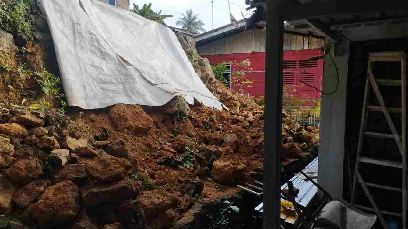 Material longsoran nyaris menimpa rumah lain yang berada di bawah lokasi kejadian.