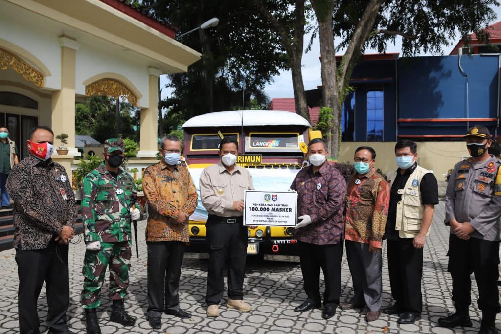“Target kita bisa terbagi 5 Juta masker, namun laporan terakhir yang masuk terkumpul 6,29 juta masker. Kabupaten Karimun mendapatkan bantuan 100 ribu masker, yang saya harap segera didistribusikan ke masyarakat, pastikan seluruh masyarakat menerimanya, serta ajak masyarakat untuk disiplin menggunakannya,” harapnya.