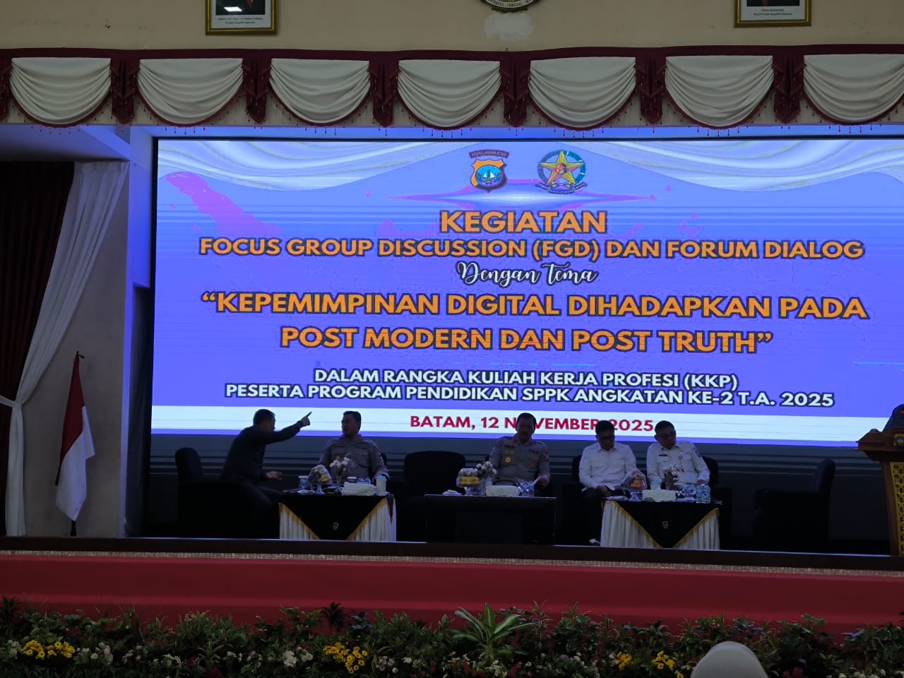 Komitmen tersebut diwujudkan dalam pelaksaaan Focus Group Discusion (FGD) antara peserta Sekolah Pengembangan Profesi Kepolisian (SPPK) Angkatan ke-2 2025 Sespim Lemdiklat Polri dengan Dinas Penanaman Modal dan Pelayanan Terpadu Satu Pintu (DPMPTSP) Provinsi Kepulauan Riau (Kepri).