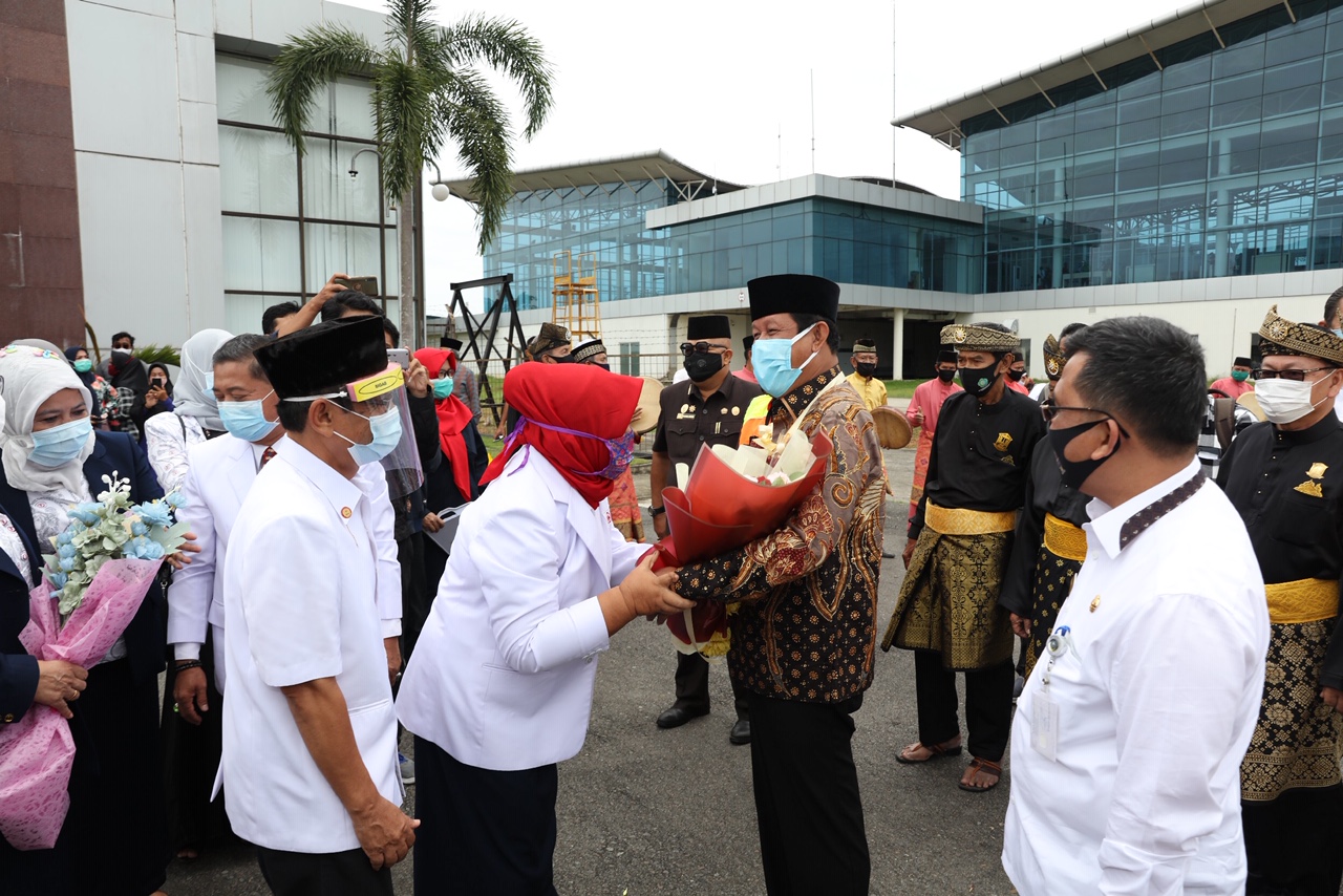 Sehari usai di lantik oleh Presiden Jokowi di Istana Kepresidenan, Jakarta. Gubernur Kepri, H. Isdianto kembali ke Ibu kota, Tanjungpinang, Selasa (28/7). Tiba di Bandara RHF, Isdianto beserta rombongan langsung di sambut Jajaran LAM, OPD dan FKPD.
