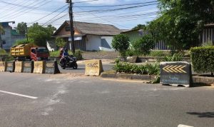 Kondisi pembatas jalan di Jalan Panjaitan, Kilometer 7, Tanjungpinang rusak usai ditabrak mobil pada, Minggu (25/5/2025). (Nzl)
