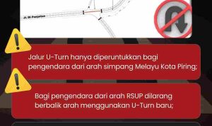 Kepada seluruh pengendara yang akan melintas lurus di lokasi tersebut diimbau untuk mengurangi kecepatan dan mengambil lajur kiri sejauh 200 meter sebelum titik U-Turn, baik dari arah simpang Melayu Kota Piring maupun dari arah sebaliknya.